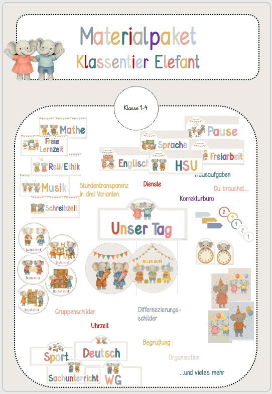 Wachsendes Materialpaket – Klassentier Elefant